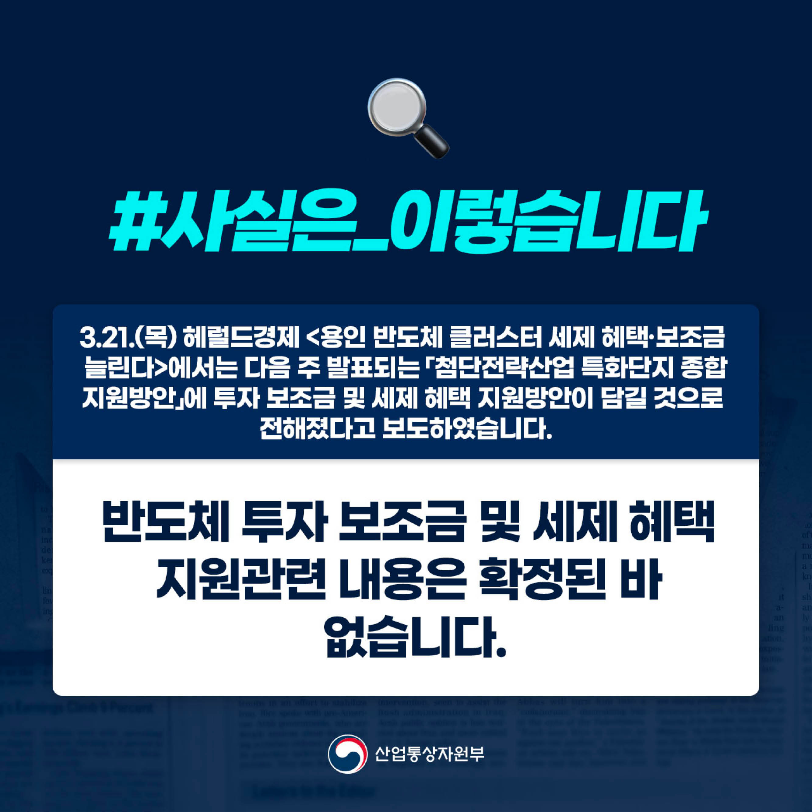 기간선택 날짜미지정 - 1주일 1개월 3개월 구분 제목 내용 담당자 담당부서 검색 전체602건 선택 10개 30개 50개 설정 681조원 규모의 민간투자 계획에 맞춰 첨단전략산업 특화단지를 종합 지원하겠습니다! 2024-03-27 조회수446 상세보기 수직농장을 수출 산업으로 육성합니다! 2024-03-26 조회수205 상세보기 설 특수 영향…매출 두 자릿수 증가! 2024-03-26 조회수137 상세보기 올해 무역보험 ‘역대 최대’…255조원 공급! 2024-03-25 조회수364 상세보기 해외 자원개발 통해 자원안보 강국 실현! 2024-03-21 조회수431 상세보기 안덕근 산업통상자원부 장관, 서울 이마트 용산역점 방문해 과일 등 신선식품 가격 동향 점검 2024-03-21 조회수139 상세보기 사실은 이렇습니다. 2024-03-21 조회수106 상세보기 매년 조선 전문인력 1,000명 양성한다! 2024-03-20 조회수175 상세보기 기업과 정부가 원팀이 되어 ‘상공인이 끌고 정부가 미는 기업하기 좋은 나라’를 만들겠습니다 2024-03-20 조회수197 상세보기 처음으로이전페이지5152535455다음페이지마지막페이지 만족도 조사 이 페이지에서 제공하는 정보에 만족하셨습니까? 매우만족 만족 보통 불만족 매우불만족 등록하기 궁금한 사항이 있으세요? 담당부서홍보담당관 담당자이지선 주무관 연락처044-203-4574