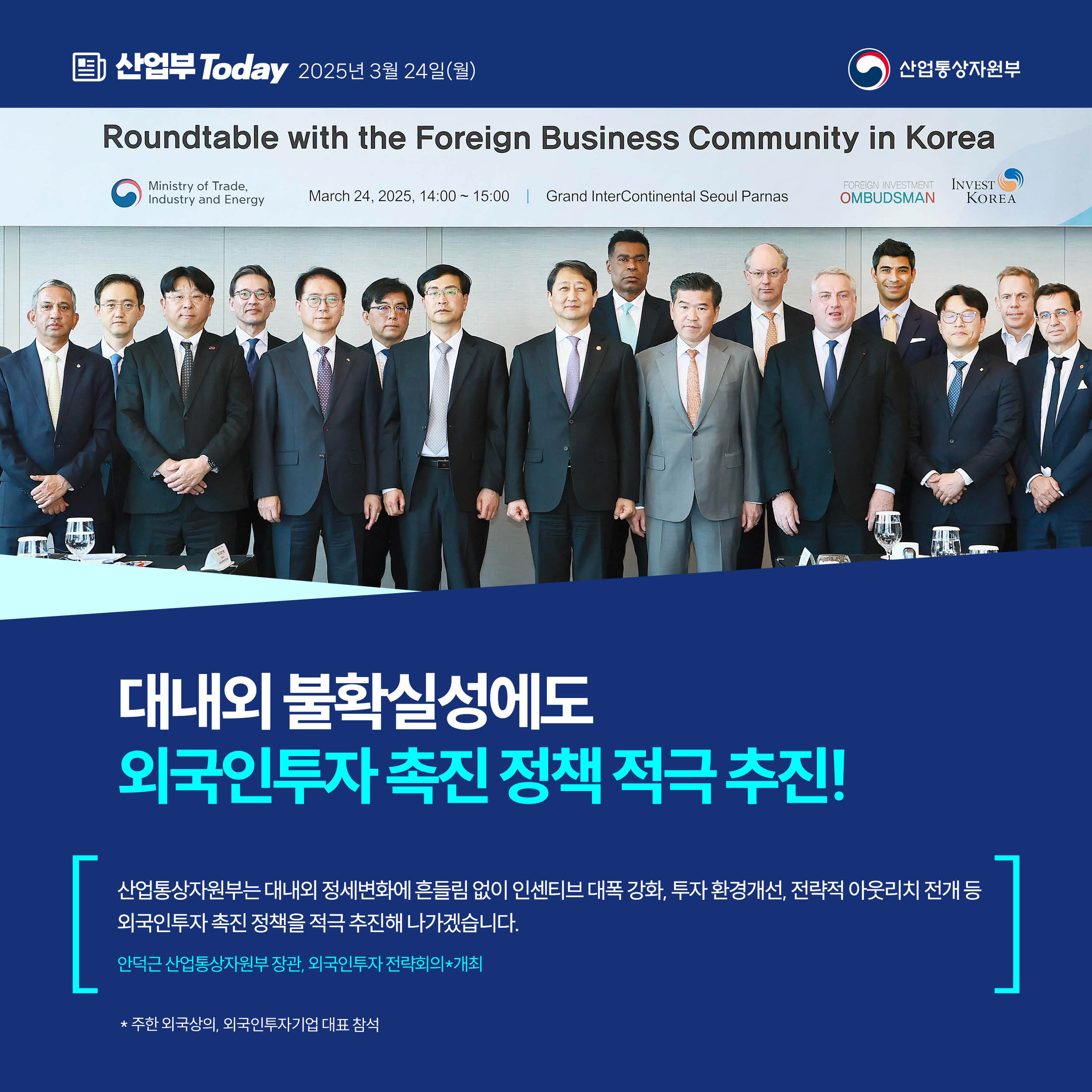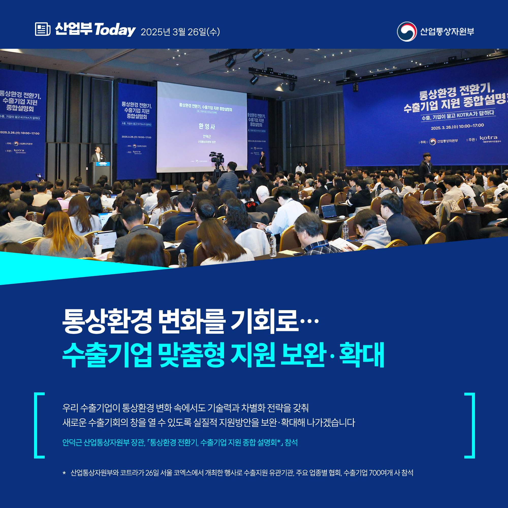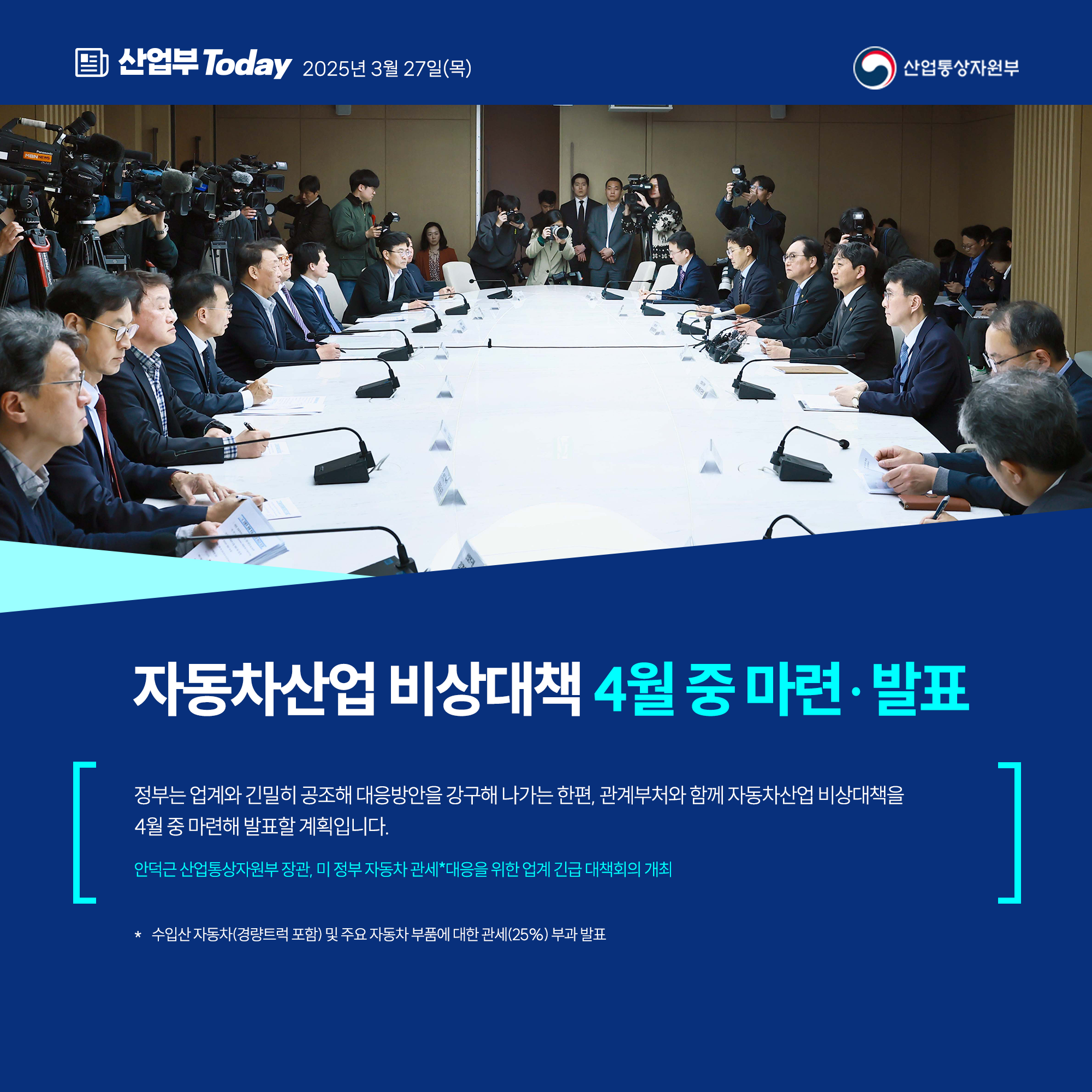 기간선택 날짜미지정 - 1주일 1개월 3개월 구분 제목 내용 담당자 담당부서 검색 전체557건 선택 10개 30개 50개 설정 美 철강·알루미늄 파생상품 관세대응 FAQ 2025-03-28 조회수396 상세보기 자동차산업 비상대책 4월 중 마련‧발표 2025-03-27 조회수207 상세보기 복지분야 부정수급 집중신고기간 2025-03-27 조회수197 상세보기 산불 국민 행동요령 2025-03-26 조회수457 상세보기 통상환경 변화를 기회로… 수출기업 맞춤형 지원 보완‧확대 2025-03-26 조회수134 상세보기 한국-알래스카, 산업·에너지 협력 활성화 기대 2025-03-25 조회수147 상세보기 탄탄하고 안정적 공급망 구축으로 대외여건 변화‧공급망 교란 대응 2025-03-25 조회수233 상세보기 대내외 불확실성에도 외국인투자 촉진 정책 적극 추진! 2025-03-24 조회수211 상세보기 한미 협력, 한층 강화 2025-03-24 조회수188 상세보기 처음으로이전페이지1112131415다음페이지마지막페이지 만족도 조사 이 페이지에서 제공하는 정보에 만족하셨습니까? 매우만족 만족 보통 불만족 매우불만족 등록하기 궁금한 사항이 있으세요? 담당부서홍보담당관 담당자이지선 주무관 연락처044-203-4574