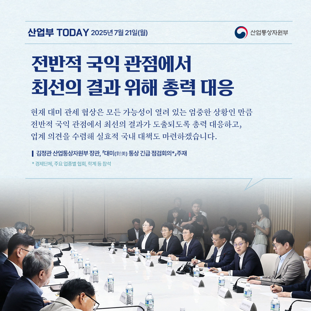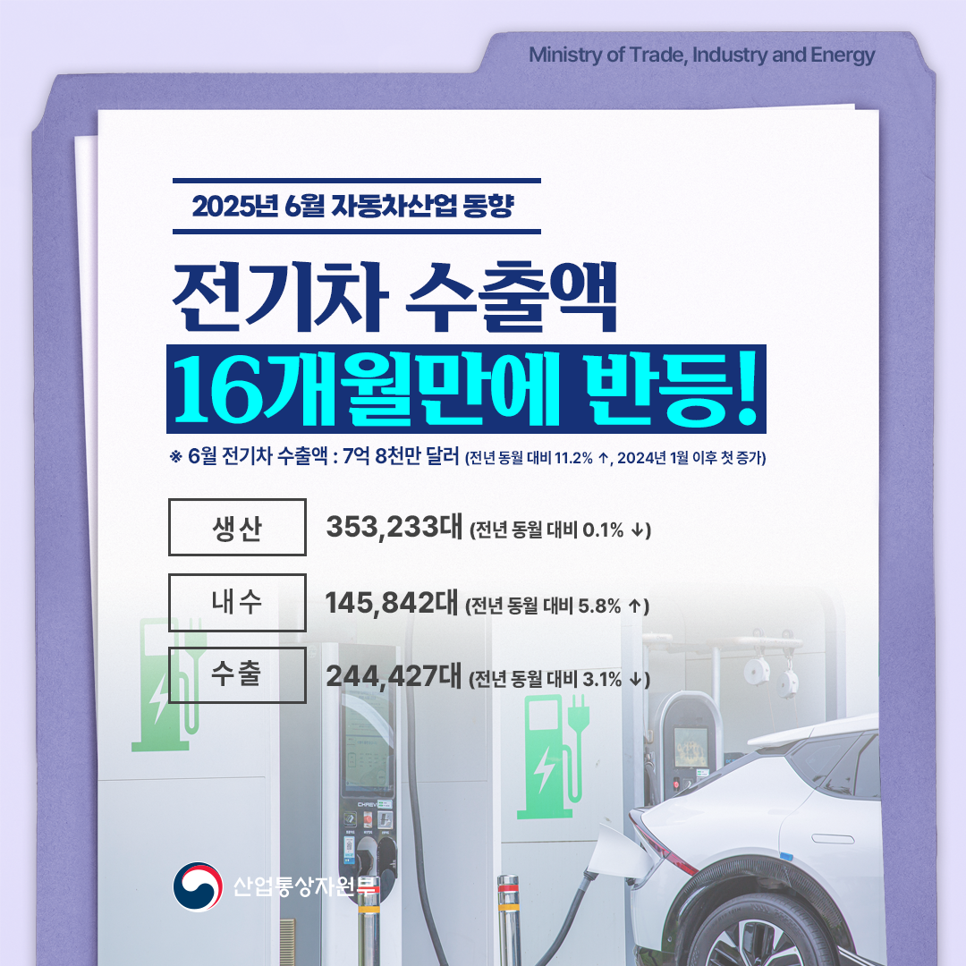 기간선택 날짜미지정 - 1주일 1개월 3개월 구분 제목 내용 담당자 담당부서 검색 전체557건 선택 10개 30개 50개 설정 제1호 국제탄소감축사업 캄보디아에서 시작한다! 2025-07-22 조회수904 상세보기 전반적 국익 관점에서 최선의 결과 위해 총력 대응 2025-07-21 조회수827 상세보기 2025년 6월 자동차산업 동향 2025-07-17 조회수1,109 상세보기 으뜸효율 가전 환급 종합안내센터 오픈! 2025-07-17 조회수996 상세보기 2025년 상반기 및 6월 ICT 수출입동향 2025-07-14 조회수1,090 상세보기 2025년 전력수급 전망 및 대책 2025-07-10 조회수1,460 상세보기 산업부 '25년 제2회 추경예산 4,456억원 확정! 2025-07-05 조회수1,453 상세보기 산업통상자원부 「으뜸효율 가전제품 환급사업」시행 2025-07-05 조회수1,753 상세보기 2025 상반기 외국인직접투자 동향 2025-07-04 조회수1,233 상세보기 처음으로이전페이지678910다음페이지마지막페이지 만족도 조사 이 페이지에서 제공하는 정보에 만족하셨습니까? 매우만족 만족 보통 불만족 매우불만족 등록하기 궁금한 사항이 있으세요? 담당부서홍보담당관 담당자이지선 주무관 연락처044-203-4574